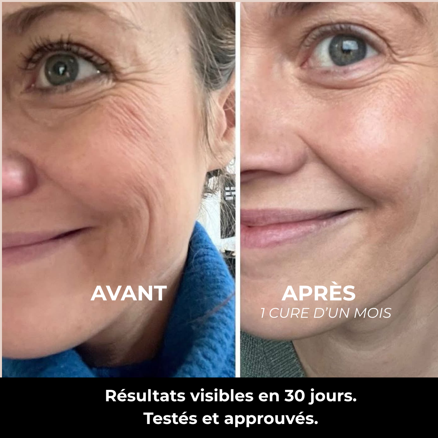 Avant des rides visibles Après un teint visiblement plus jeune.
