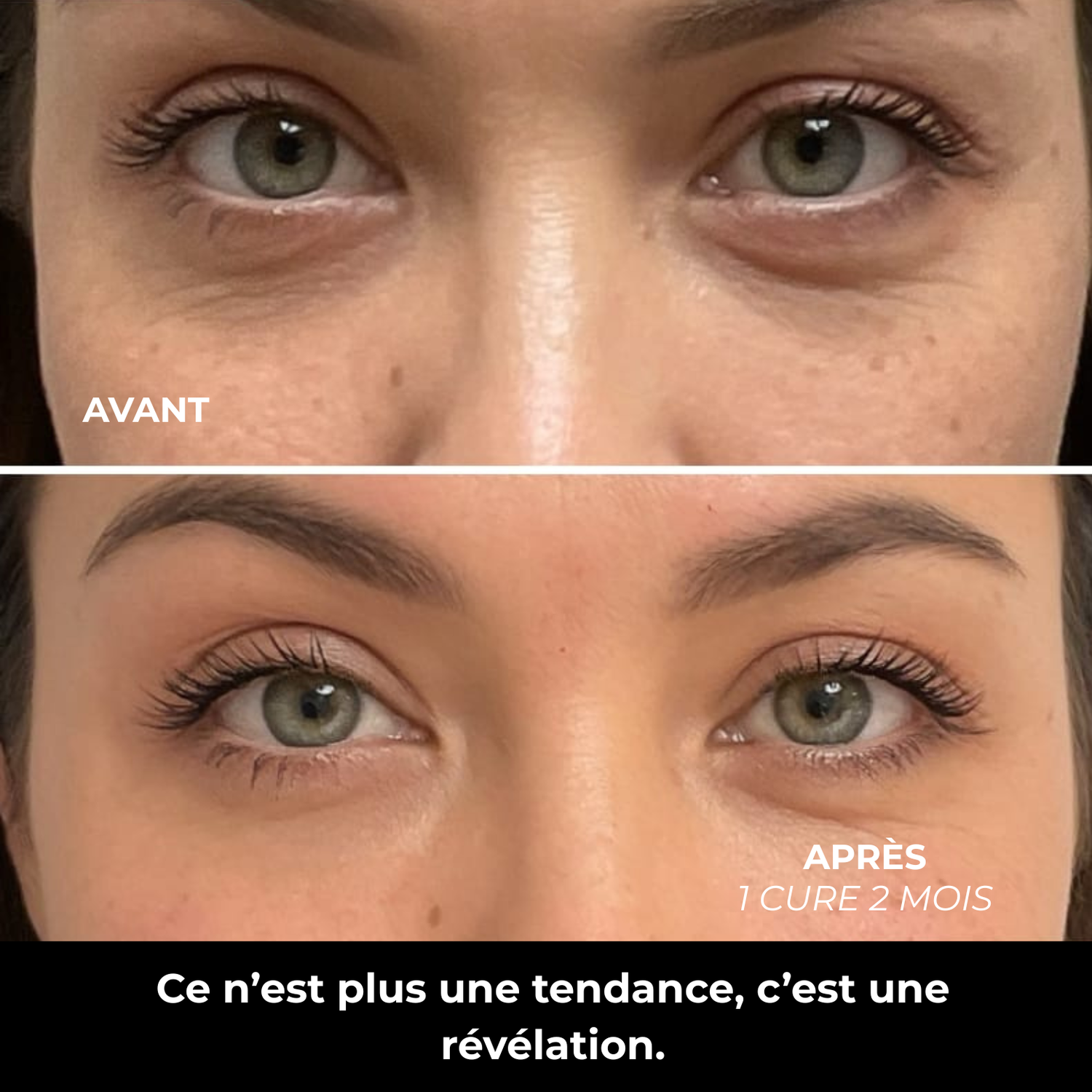 Dès la première utilisation, vous remarquerez un regard plus reposé et lumineux.En 1 à 2 semaines, les cernes s’atténuent, la peau est plus lisse et le contour des yeux visiblement raffermi.